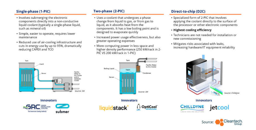 Immersion cooling is currently deployed primarily in niche or pilot-scale applications. Examples include high-frequency trading, military and aerospace electronics, and early cryptocurrency mining clusters seeking extreme cooling efficiency. Some hyperscalers have conducted proof-of-concept trials—Microsoft, for example, tested two-phase immersion to evaluate efficiency and component longevity. Certain edge computing deployments or harsh-climate environments also consider immersion cooling.