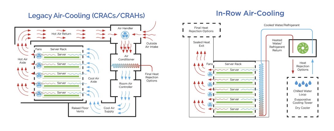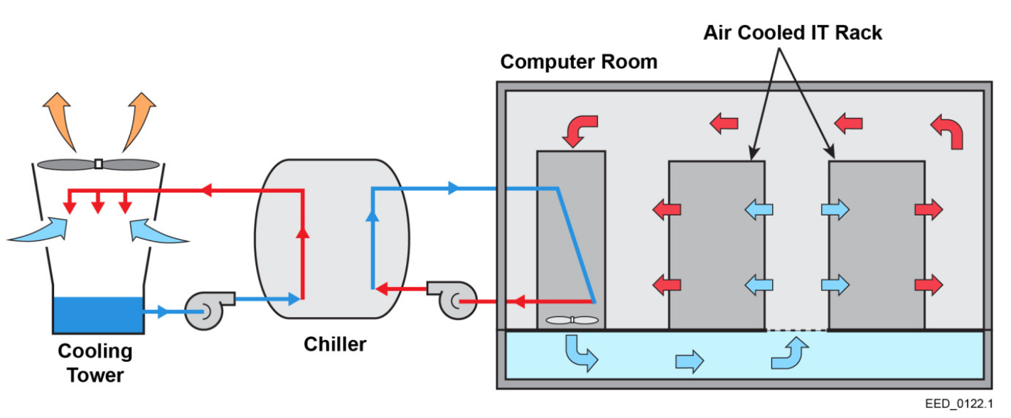 Conventional chiller-based cooling architectures commonly used in traditional data centers