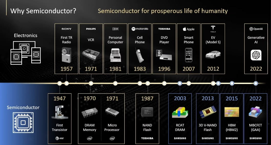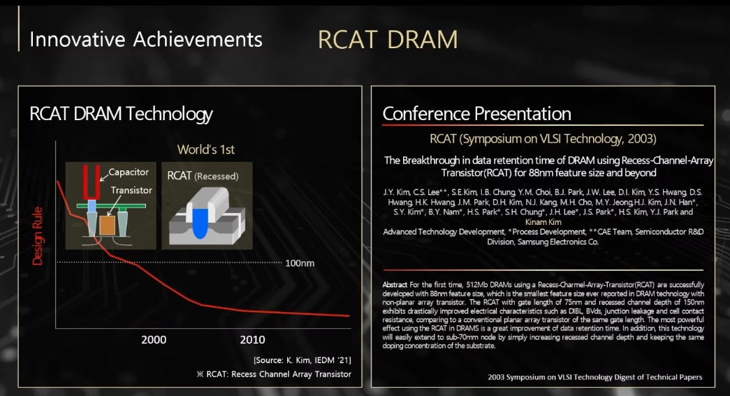 Since the 1970s, the commercialization of ever-smaller, faster transistors has been the cornerstone of electronics progress. High-density integration and speed improvements have shrunk device form factors while boosting performance, enabling the PC revolution, the mobile era, and now the AI age. Over the past 50 years, countless technologies have emerged, but Kim chose to highlight four transformative contributions in which he played a pivotal role: the Recessed Channel Array Transistor (RCAT) for DRAM, 3D Vertical NAND (V-NAND) flash, High Bandwidth Memory (HBM), and the Multi-Bridge Channel FET (MBCFET), also known as Gate-All-Around (GAA) technology.