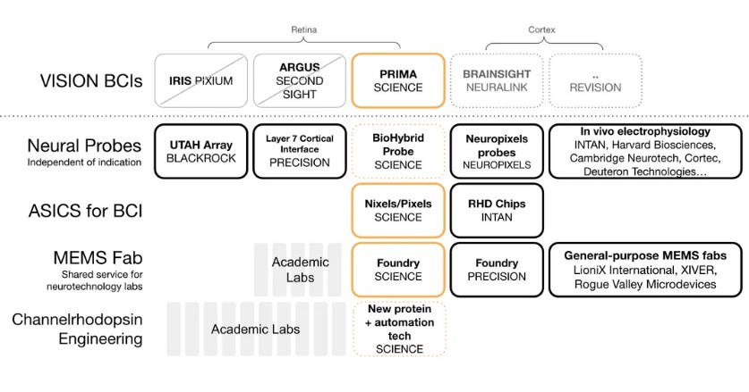 The company is particularly ambitious in vision restoration, aiming to create high-resolution cortical implants that could provide detailed artificial vision for the blind. Backed by significant venture funding and a team of top neuroscientists and engineers, Science Corporation pursues innovative approaches combining biology, electronics, and AI to push beyond current BCI limitations. It targets transformative applications in neurological restoration and human augmentation, positioning itself as a bold contender in the next generation of neurotech.