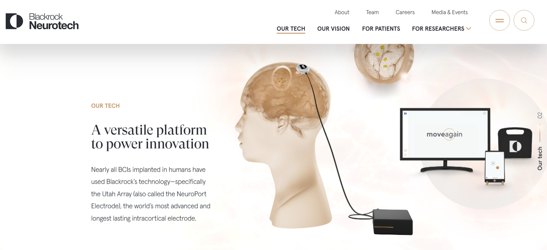 With nearly two decades of human implantation experience, Blackrock has supported groundbreaking BCI trials for paralysis, speech restoration, and motor control. Its platforms power many academic and clinical studies worldwide, offering reliable, high-resolution neural data for research and therapeutic applications. The company continues to advance scalable, long-term implantable solutions for neurological restoration and human augmentatio