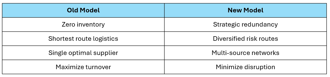 For over three decades, the world economy was built on a singular organizing principle: efficiency. Corporations optimized supply chains across borders to minimize cost, maximize scale, and accelerate capital turnover. Manufacturing migrated to where labor was cheapest, resources most accessible, and regulations most accommodating. Just-in-Time (JIT) logistics reduced inventories to near zero. The result was a system that delivered low prices, controlled inflation, and unprecedented corporate profitability.