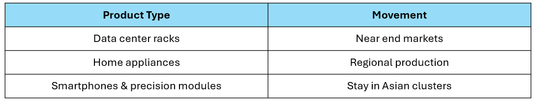 The report stresses that even when final assembly moves, midstream component ecosystems remain anchored in Asia. Why?