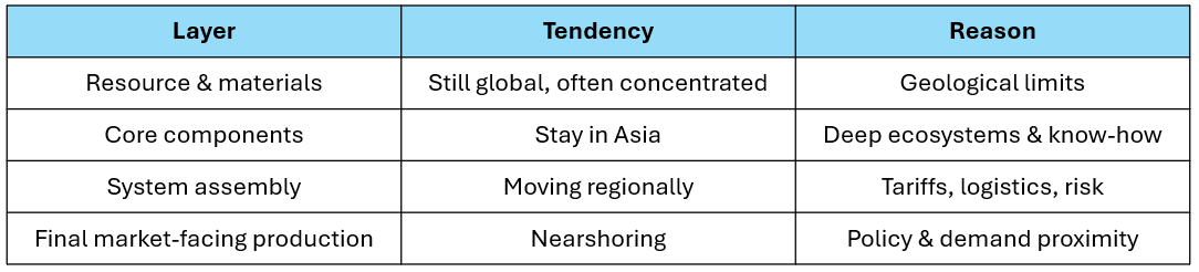 Supply chains are being reorganized by functional layer, not by geography alone.