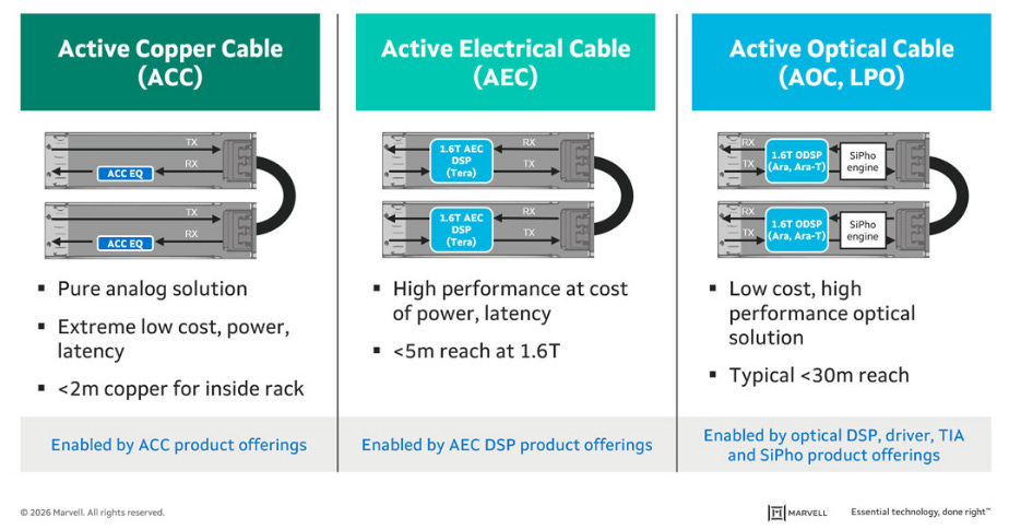 Among these options, Active Electrical Cable (AEC) has emerged as the optimal solution for short-reach in-rack interconnects in AI data centers, because it achieves the best balance between cost, power consumption, and transmission distance.