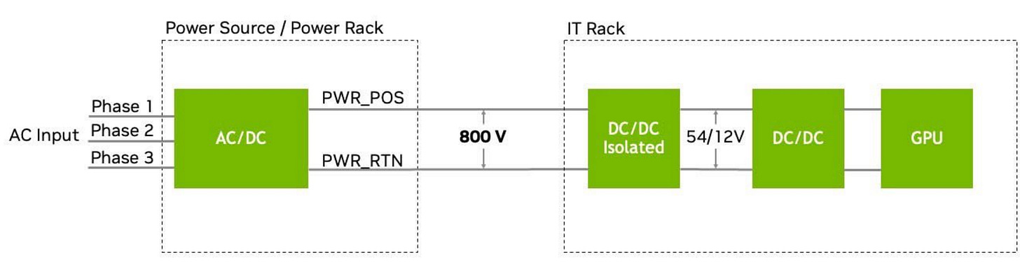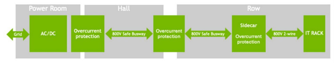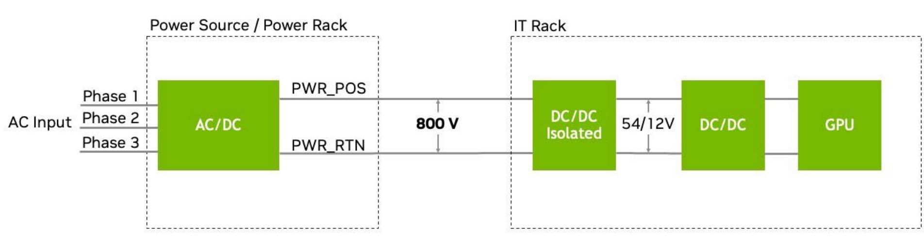 To accelerate this transition, NVIDIA has aligned with a cross‑section of industry partners across the AI power ecosystem. This includes power‑semiconductor leaders such as Analog Devices, Infineon, Navitas, ROHM, STMicroelectronics, Renesas, Texas Instruments, who are developing the GaN‑/SiC‑based switches and control ICs at the heart of the 800 V HVDC lodestar. Supporting these silicon efforts are module and system vendors like Delta, Flex Power, Lead Wealth, LiteOn, Megmeet, which design high‑voltage DC buses, rectifier units, and busbar assemblies. At the facilities layer, firms including Eaton, Schneider Electric, Vertiv are collaborating on DC‑centric power rooms, overcurrent protection schemes, and integrated UPS/PDU systems. Together, this ecosystem is addressing safety, fault isolation, thermal management, and repair standards required to make high‑voltage DC viable at scale. With the NVIDIA Kyber rack platform slated for production in 2027, this ecosystem is expected to deliver a full stack, MW‑scale AI data center power architecture.